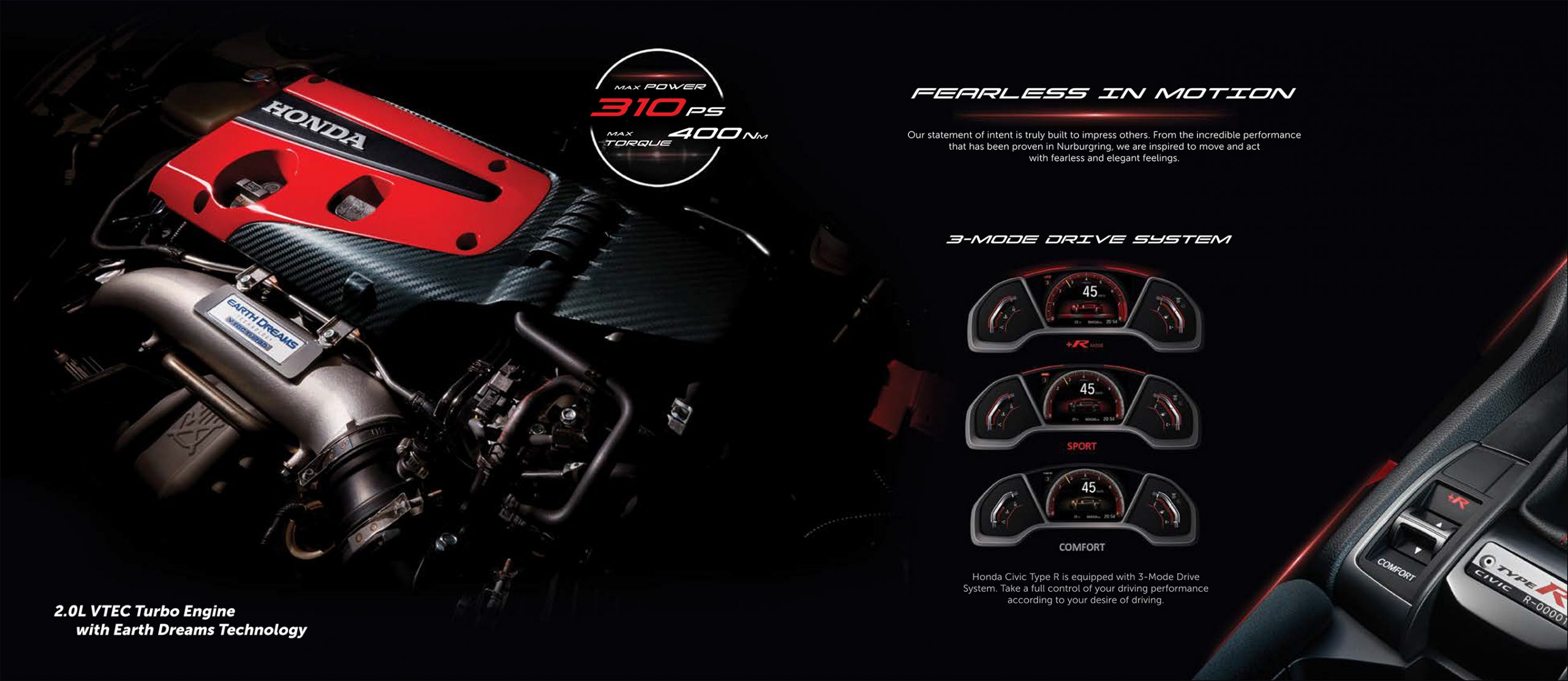 Our senses of racing are rising up! From the aerodynamic linings of its body, we are being stimulated to race ahead, whether in the real racing arena or in the daily roads. Every kind of street is in our control, and we are ready to get the new admiration from around. Honda Civic Type R is A NEW FRONT-WHEEL DRIVE TRACK RECORD AT SUZUKA CIRCUIT