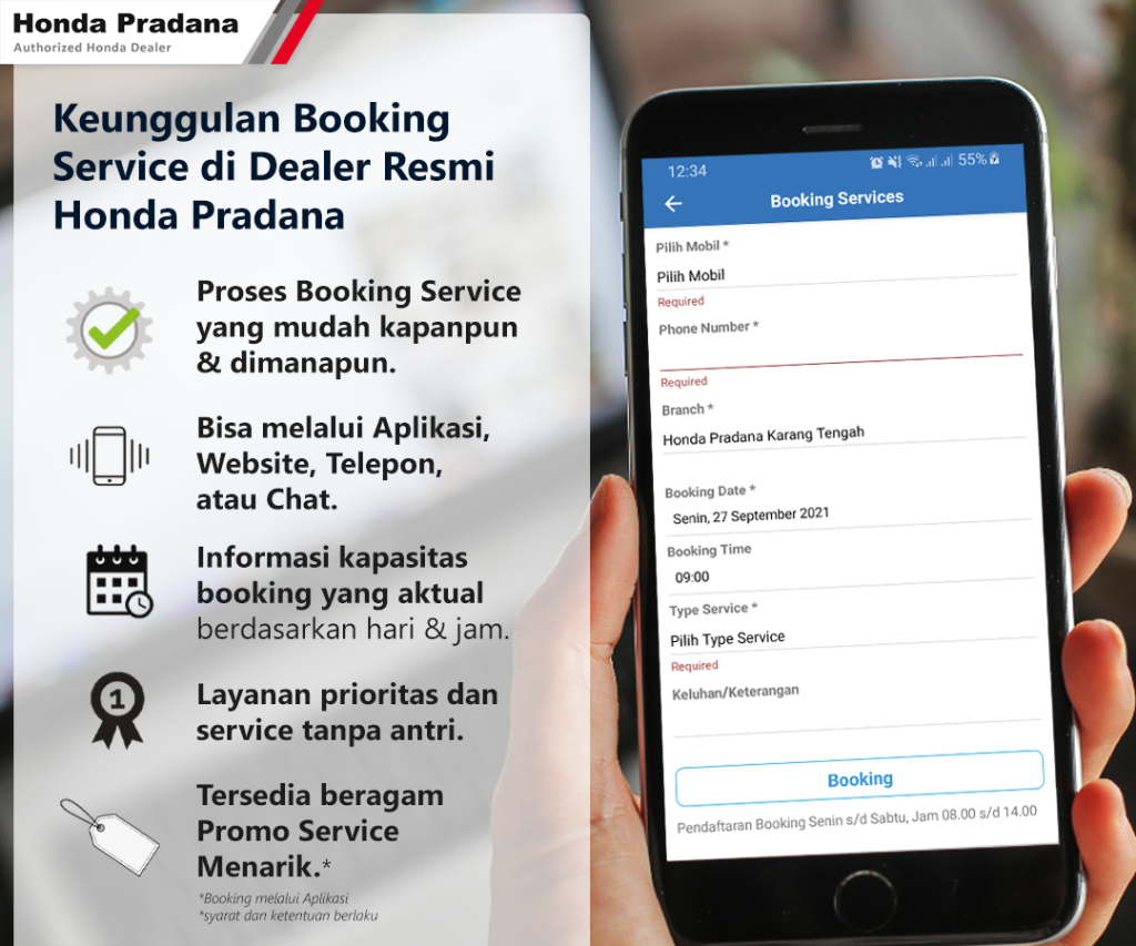 Dapatkan diskon jasa service 10% dan diskon spare part 5% khusus untuk customer yang melakukan booking service